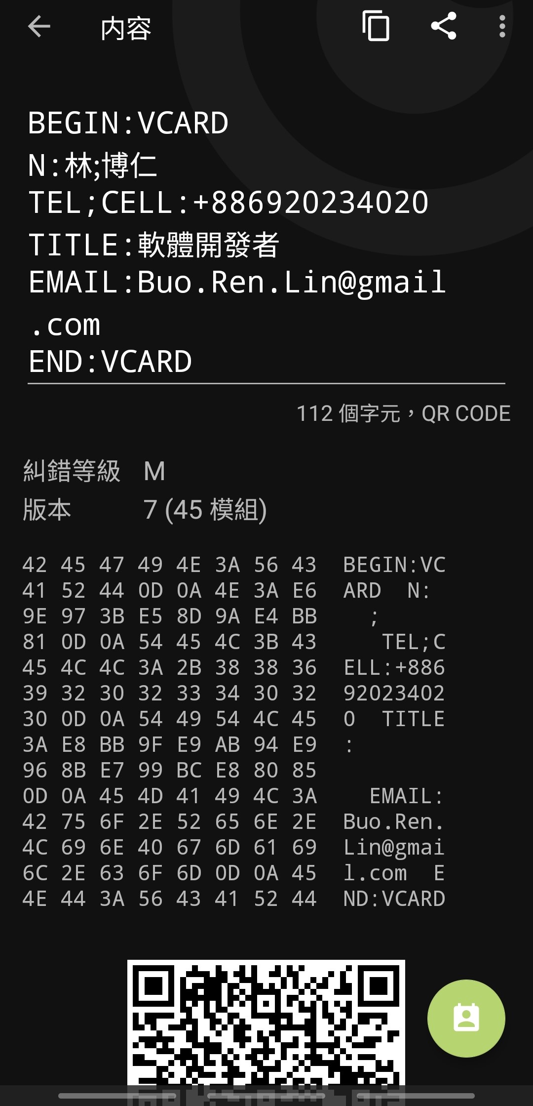 在 H4 聚會時發現某社群朋友的 QrCode 名片在 iphone 上會亂碼,無聊當起 RFC 警察來研究是哪一方不照標準實作