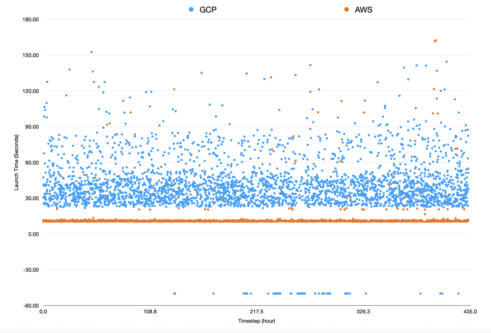 一個很有錢的研究者一直去AWS和GCP開機器(T4 GPU 實例),比較他們機器開啟的成功率跟耗時